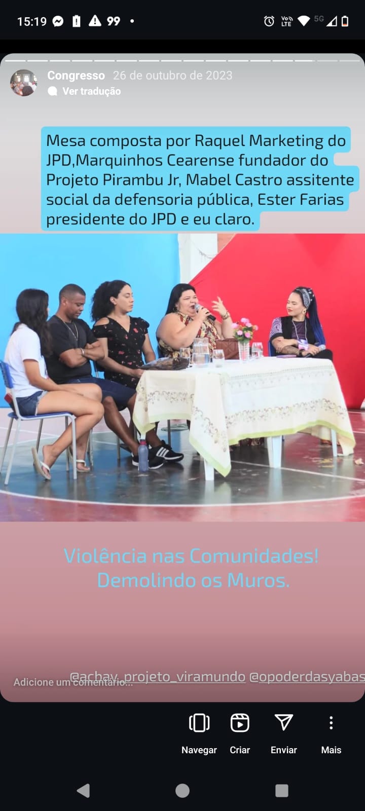 Presidente da Associação Cultural e Beneficente Aldeide ViraMundo (ACBAV) instituição sem fins lucrativos na comunidade do Bom Jardim. Fundadora do Coletivo de mulheres de Axé " O PODER DAS YABÁS ", produtora do GRUPO AFRO K'LUNDU. Integrante do Bloco Zé Almir, do Afoxe Omorisá Odé Campeão do Carnaval Cearense de 2023.