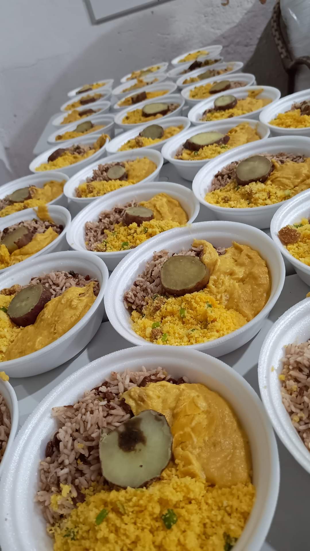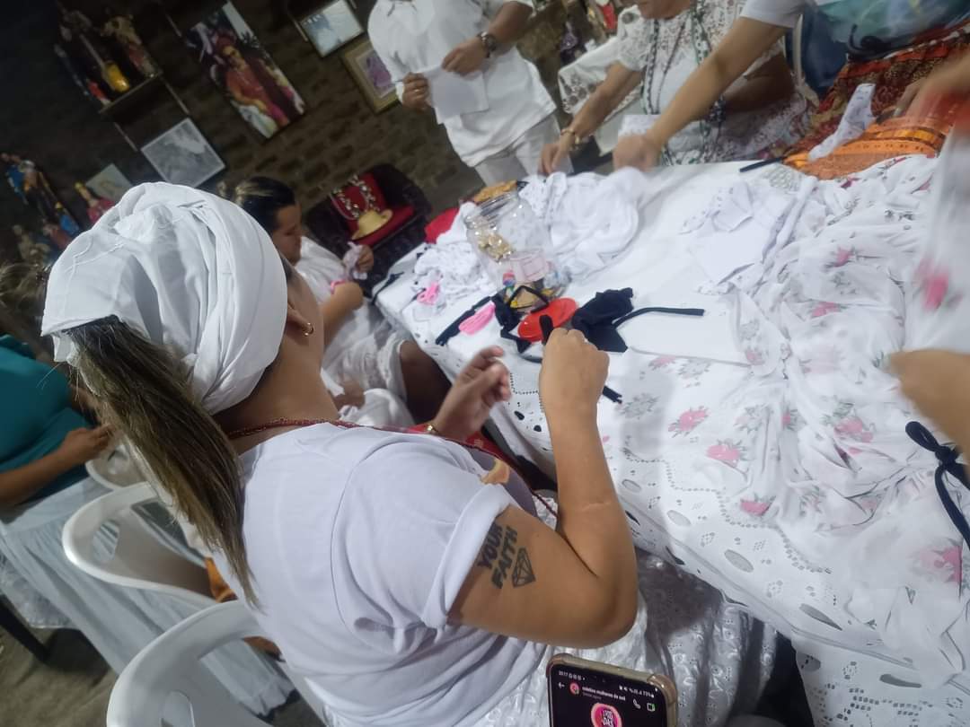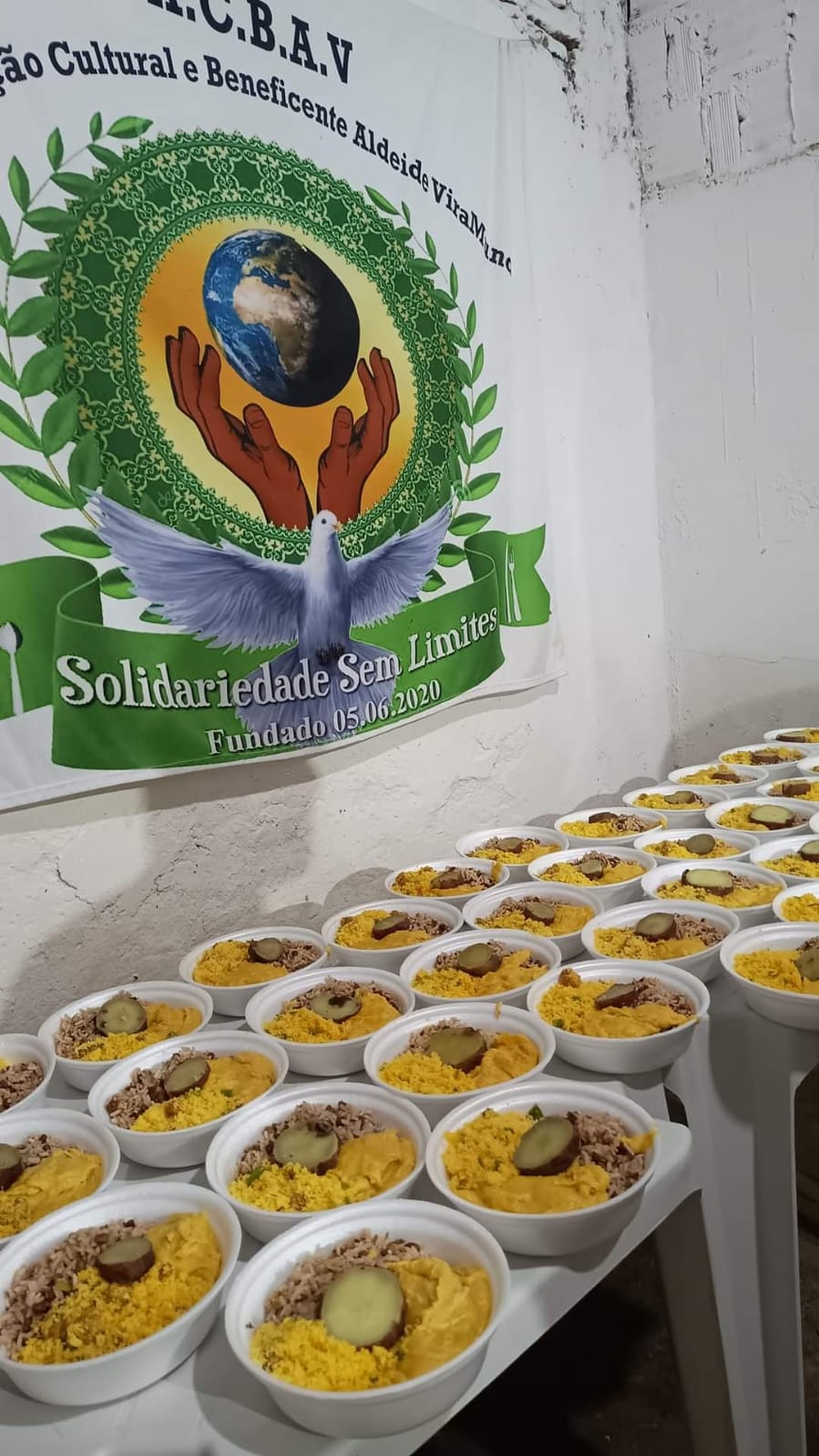 Então, em maio de 2020, no auge do primeiro grande pico da pandemia, Janaína relatou ao pai Jefferson que faria uma doação de 100 quentinhas e 100 água para as pessoas em situação de rua na praça do Ferreira. Foi elaborado um cardápio baseado na comida ofertada aos pretos velhos de Aruanda, já que não poderia ter o festejo por conta do isolamento social rígido. O que iniciou como uma ação individual de Janaína tornou-se uma ação institucional com o engajamento de irmãos, irmãs de santo de amigos e amigas. A ação carregava, naquela época, o nome de Indaiá Solidário, apelido de Janaína Rodrigues. No entanto, Janaína não queria com a ação fazer uma autopromoção e logo as pessoas envolvidas oficializaram o projeto e juntos criaram a Associação Cultural e Beneficente Aldeide ViraMundo. uma homenagem à matriarca da raiz. E devido à ação envolver vários coletivos da casa, então, batizamos o projeto de “Projeto ViraMundo “ , carinhosamente uma homenagem ao nosso chefe superior.