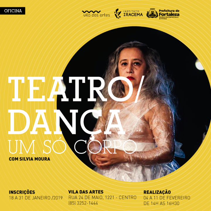 A Escola Pública de Teatro da Vila das Artes abre vagas, nesta sexta-feira (18/01), para a oficina gratuita “Teatro/Dança: Um Só Corpo”, com a bailarina e atriz Silvia Moura. As inscrições ficam disponíveis no site da instituição até o dia 31 de janeiro.